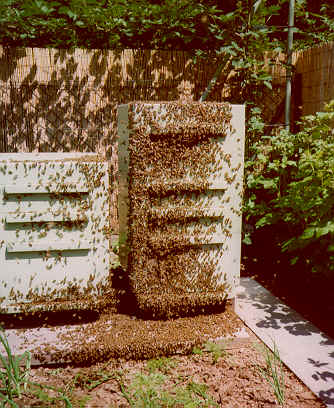 Die Bienen bemerken ihre Abwesenheit und kehren nach ca. 15 Minuten wieder ins Ursprungsvolk zurück.